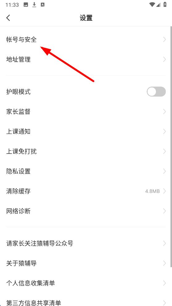 3、進(jìn)入設(shè)置頁(yè)面后,找到并點(diǎn)擊上方的帳號(hào)與安全選項(xiàng)。