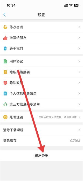 3、在設(shè)置頁(yè)面,點(diǎn)擊下方的退出登錄選項(xiàng)。
