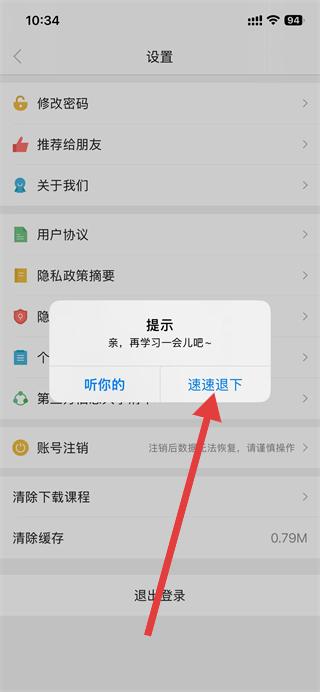 4、在彈出的窗口中,點(diǎn)擊速速退下,即可退出登錄。