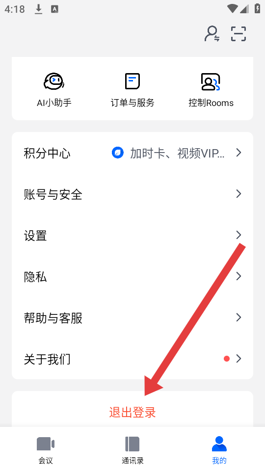1、打開騰訊會(huì)議APP,點(diǎn)擊頁面左上角頭像進(jìn)入個(gè)人中心,滑動(dòng)至底部點(diǎn)擊退出登錄并確認(rèn),退出當(dāng)前賬號(hào)。