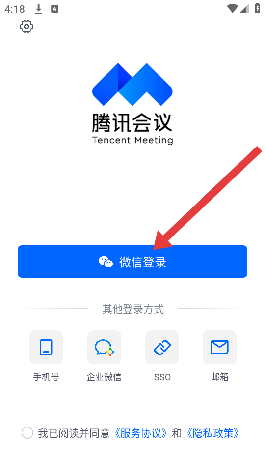 2、回到登錄的頁面,勾選協(xié)議后,選擇新賬號(hào)的登錄方式如使用微信進(jìn)行登錄,進(jìn)入登錄的流程。