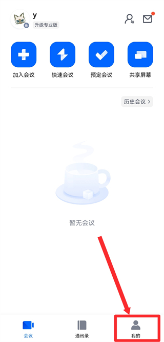1、打開騰訊會(huì)議APP,點(diǎn)擊右下角我的,進(jìn)入個(gè)人頁面。