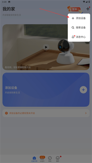 2、在右上方彈出的菜單欄中,找到并點(diǎn)擊添加設(shè)備的按鈕。