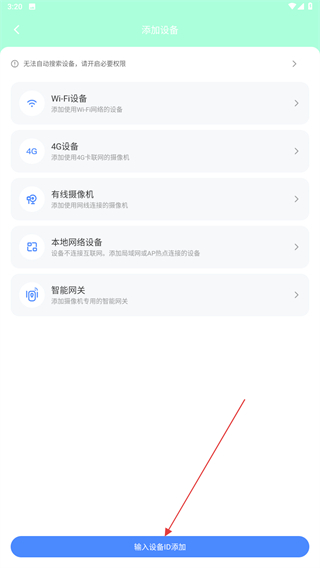 3、進(jìn)入添加設(shè)備的頁(yè)面內(nèi),拉到底下點(diǎn)擊輸入設(shè)備ID添加。