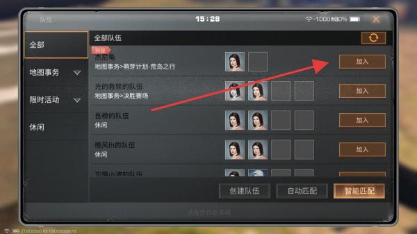 3、在組隊界面的全部隊伍列表里,瀏覽其他玩家創(chuàng)建的隊伍,找到想加入的隊伍后點擊其對應的加入申請入隊。