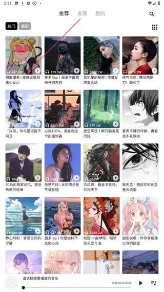 2、進入熱門推薦的頁面內(nèi),選擇并點擊歌單名稱。