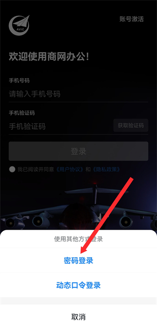 2、在彈出的選項(xiàng)中,點(diǎn)擊密碼登錄,進(jìn)入密碼登錄的頁面。