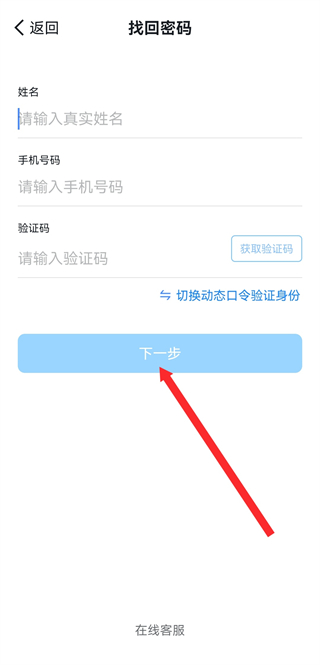 4、在找回密碼頁面,依次信息點(diǎn)擊下一步,按照提示完成密碼重置。