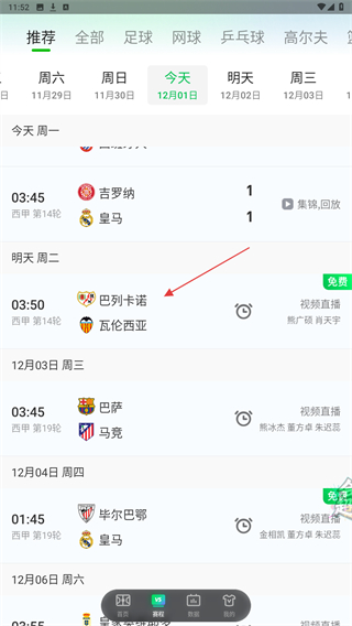 2、進(jìn)入賽程的頁面內(nèi),選擇并點擊明天的賽程名稱。