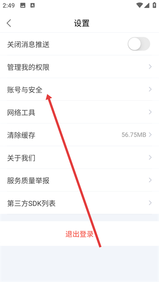 3、在設(shè)置頁(yè)面中,找到并點(diǎn)擊上方的賬號(hào)與安全選項(xiàng)。