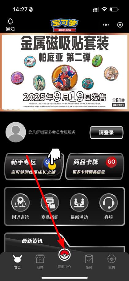 1、打開(kāi)寶可夢(mèng)相關(guān)App,點(diǎn)擊底部導(dǎo)航欄的活動(dòng)中心進(jìn)入活動(dòng)界面。