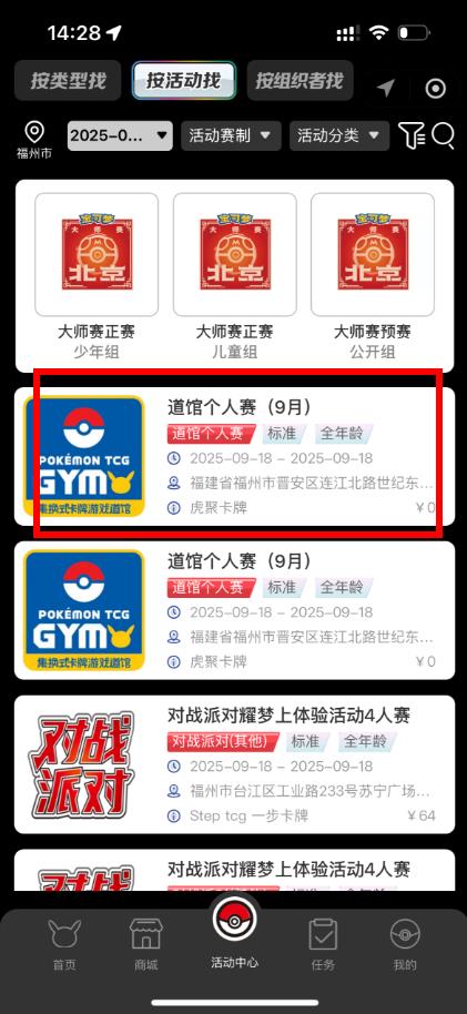 3、在按活動(dòng)找的頁(yè)面中,瀏覽活動(dòng)列表,找到想要查看的活動(dòng)并點(diǎn)擊。