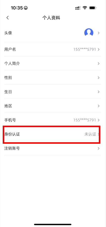 2、在個(gè)人資料頁(yè)面中,找到身份認(rèn)證選項(xiàng)并點(diǎn)擊進(jìn)入。