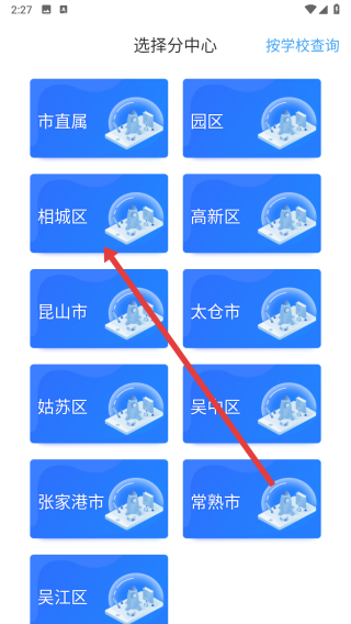 1、可以在選擇分中心頁面中,選擇點(diǎn)擊相城區(qū)進(jìn)入開始登錄操作。