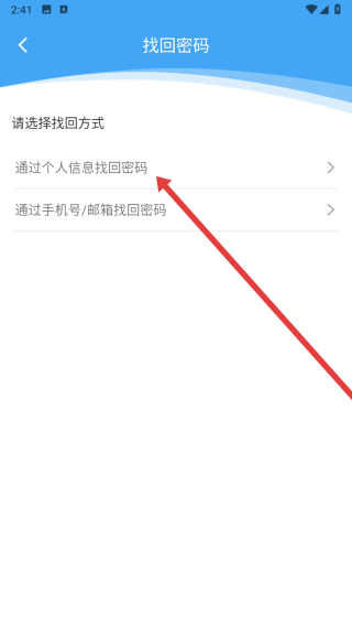 3、跳轉(zhuǎn)到找回密碼頁面時,可以點(diǎn)擊使用通過個人信息找回密碼。