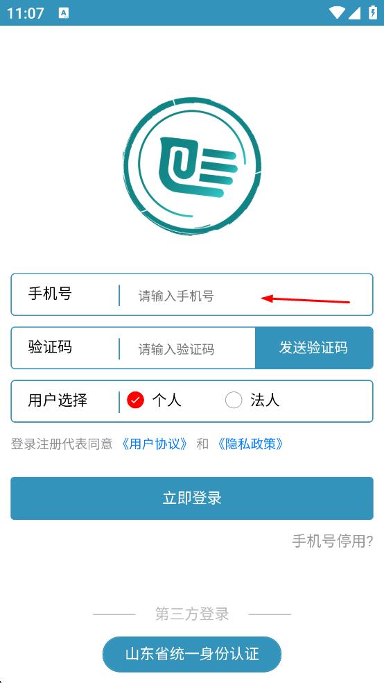 2、進入登錄界面,在“手機號”欄輸入自己的手機號。