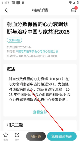 2、在指南詳情頁點擊免費閱讀指南,進入指南閱讀頁面。