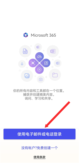 1、打開Microsoft Office的應(yīng)用,需要點(diǎn)擊使用電子郵件或電話登錄。