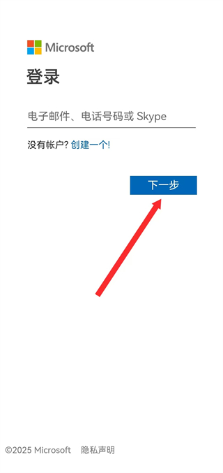 2、在登錄頁(yè)面輸入電子郵件、電話號(hào)碼或Skype賬號(hào),點(diǎn)擊下一步。