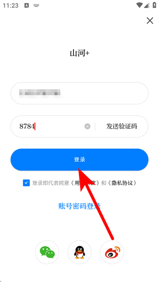 3、輸入收到的驗(yàn)證碼,勾選同意相關(guān)條款后點(diǎn)擊登錄按鈕,即可完成注冊(cè)登錄操作。
