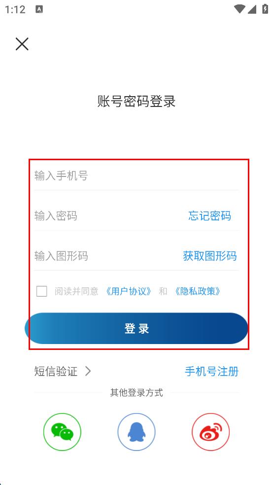 4、在登錄界面,輸入手機(jī)號(hào)或QQ號(hào),接著輸入密碼,勾選已閱讀并同意相關(guān)協(xié)議,最后點(diǎn)擊登錄按鈕。