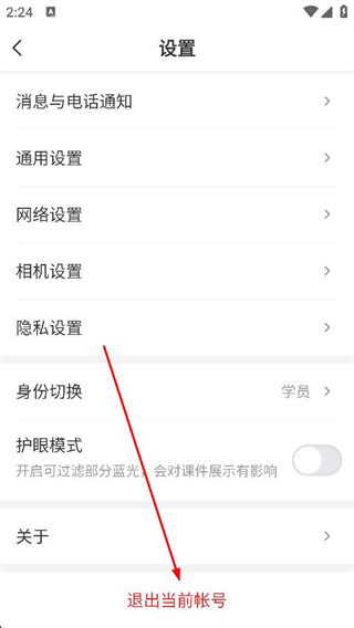 3、進(jìn)入設(shè)置頁面后,找到并點(diǎn)擊退出當(dāng)前帳號選項(xiàng)。