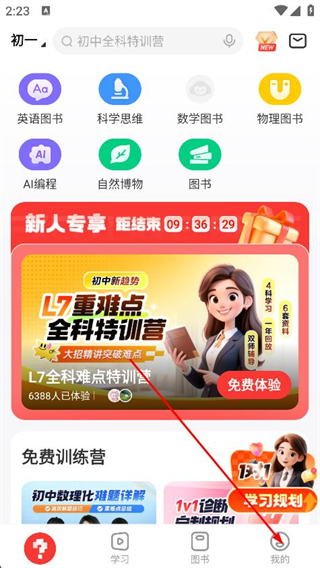 1、打開學(xué)而思網(wǎng)校app,點(diǎn)擊底部導(dǎo)航欄我的選項(xiàng)。