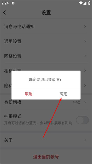 4、在彈出的提示框中,點(diǎn)擊確定即可完成退出登錄。