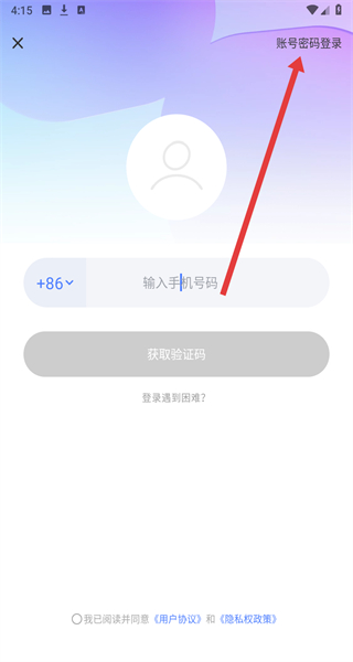 2、登錄界面點(diǎn)擊右上角“賬號(hào)密碼登錄”,切換至賬號(hào)密碼登錄方式。