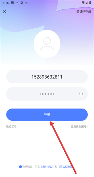 4、輸入密碼并勾選協(xié)議后,點(diǎn)擊“登錄”按鈕,完成賬號(hào)登錄。
