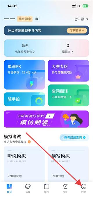 1、打開e聽說中學(xué)app,點(diǎn)擊底部導(dǎo)航欄的我的選項(xiàng)。