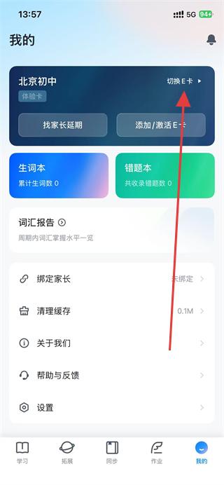 2、在我的頁面中,找到并點(diǎn)擊上方的切換E卡區(qū)域。
