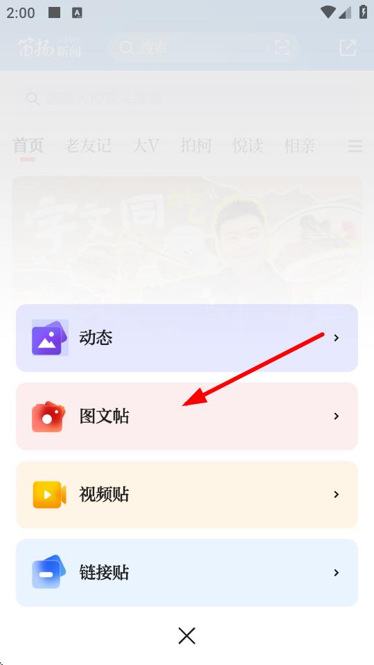 2、在彈出的選項中,點擊圖文帖選項,進入話題選擇頁面。