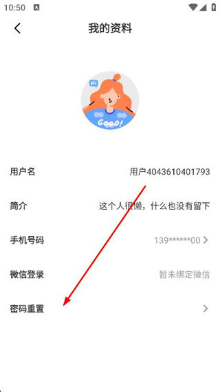 3、進(jìn)入我的資料頁面后,點(diǎn)擊密碼重置選項。