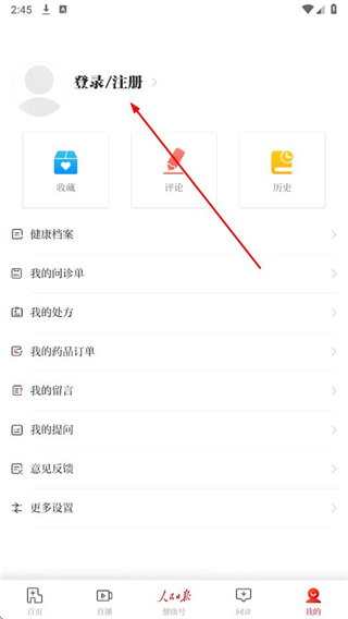 1、打開人民日?qǐng)?bào)健康A(chǔ)PP,點(diǎn)擊導(dǎo)航欄中的我的。