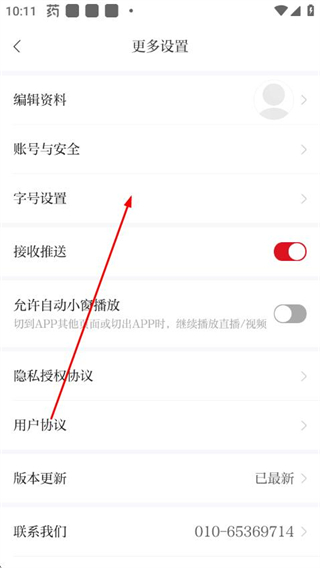 3、在更多設(shè)置頁面點(diǎn)擊字號(hào)設(shè)置選項(xiàng),進(jìn)入字號(hào)設(shè)置頁面。