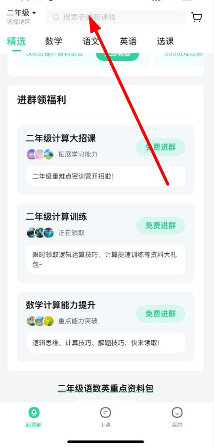 1、打開(kāi)作業(yè)幫APP進(jìn)入主界面,點(diǎn)擊頂部搜索欄搜索老師和課程。