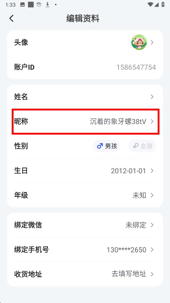 3、在編輯資料界面里,找到昵稱選項,點擊其右側(cè)的箭頭,然后輸入想要修改的名字,確認后即可完成名字的修改。