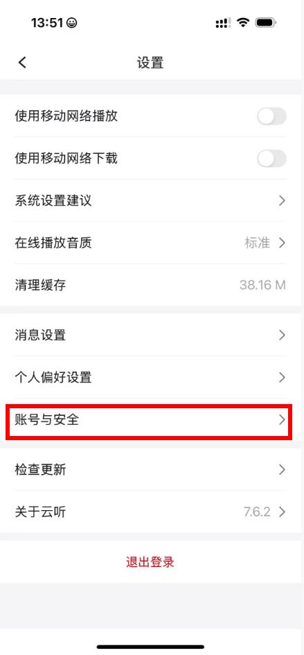 2、進入設(shè)置頁面后,點擊賬號與安全選項。