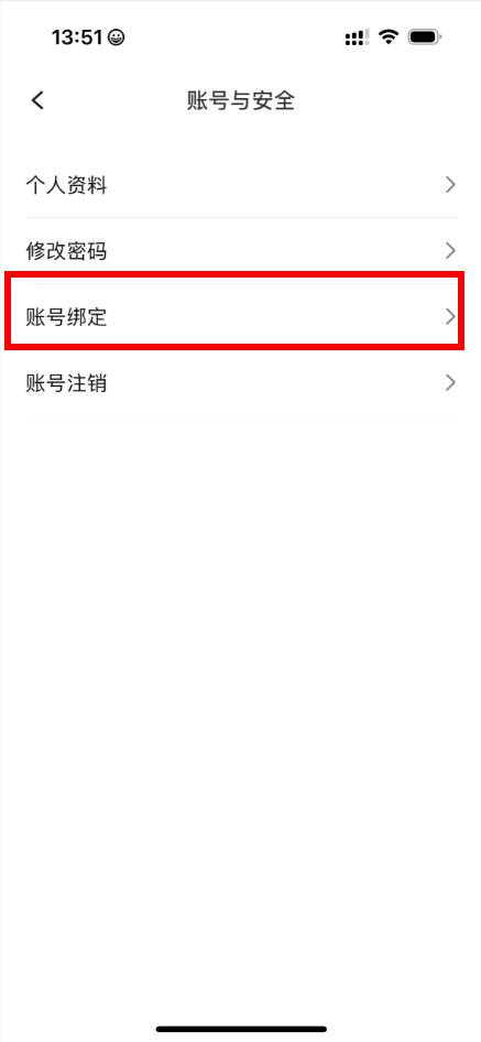 3、在賬號與安全頁面中,點擊賬號綁定選項。