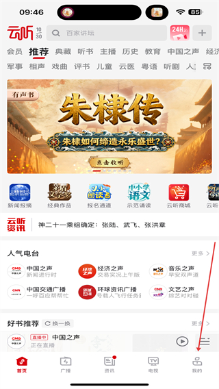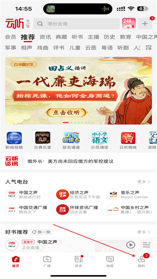 1、打開云聽APP,進入首頁點擊右下我的圖標(biāo)。