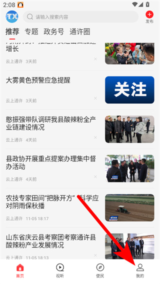1、在云上通許首頁(yè),點(diǎn)擊右下角我的選項(xiàng),進(jìn)入個(gè)人中心頁(yè)。
