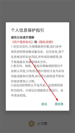 1、打開(kāi)小日常app,在彈出的窗口中,點(diǎn)擊我同意。