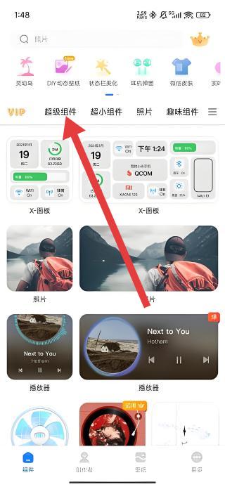 1、在應(yīng)用主界面頂部導(dǎo)航欄,可以通過(guò)點(diǎn)擊超級(jí)組件標(biāo)簽,進(jìn)入超級(jí)組件分類展示頁(yè)面。