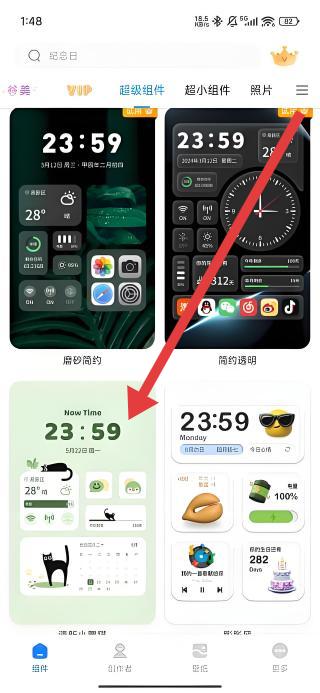 2、在超級(jí)組件列表中,選擇心儀的組件如帶貓咪元素的NowTime樣式,進(jìn)入該組件的詳情預(yù)覽界面。