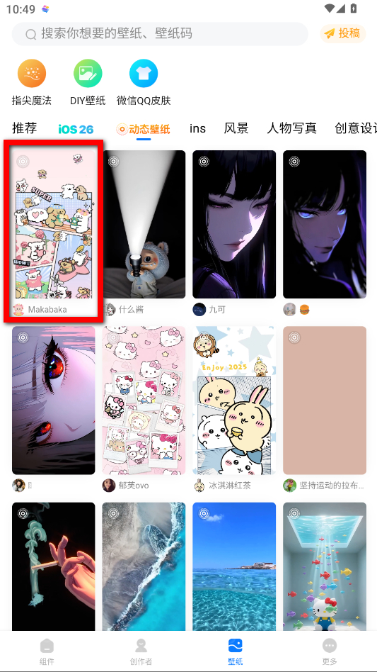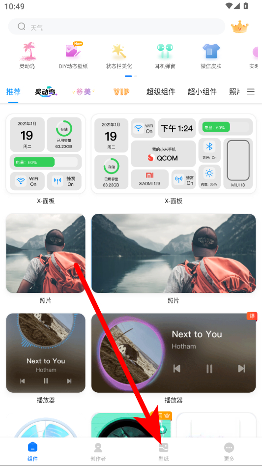 1、打開(kāi)萬(wàn)能小組件App,點(diǎn)擊底部導(dǎo)航欄中的壁紙選項(xiàng)進(jìn)入壁紙界面。