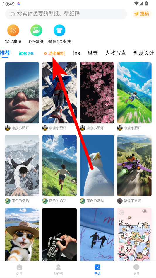 2、在壁紙界面,點(diǎn)擊上方的動(dòng)態(tài)壁紙分類篩選出動(dòng)態(tài)壁紙。