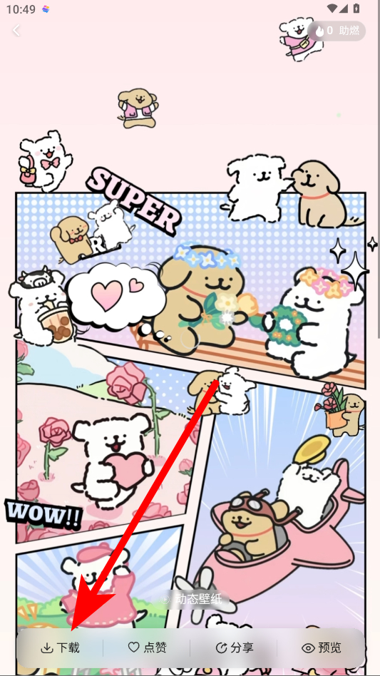 4、在壁紙?jiān)斍轫?yè)中,點(diǎn)擊下載按鈕將壁紙下載到手機(jī),之后按手機(jī)設(shè)置壁紙流程應(yīng)用即可。
