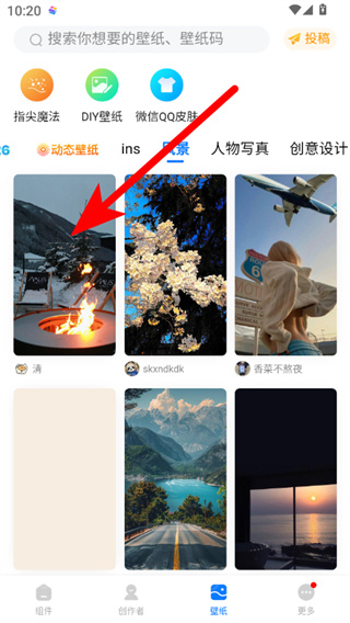 2、在壁紙選擇頁(yè)面,點(diǎn)擊風(fēng)景等分類選項(xiàng),進(jìn)入對(duì)應(yīng)壁紙列表頁(yè)面。