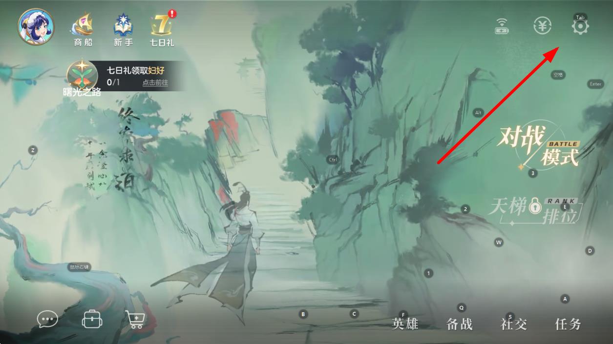 1、進(jìn)入游戲主界面點(diǎn)擊右上方設(shè)置圖標(biāo),進(jìn)入設(shè)置頁(yè)面。